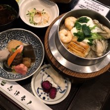 大和肉鶏の釜めし定食(+栗の追加) 定食は釜めしに炊き物が付きます。 淡色のごはんは最初は薄味に感じましたが、実はけっこうごはんの量があり(お釜の底までごはんが詰まってる)最後まで食べきる頃にはちょうどよくなりました。 奈良国立博物館近くにあり、外国人観光客で行列ができるお店。 店員さんがめっちゃ流暢な英語で対応、メニューも日英中韓表記。