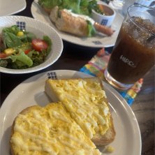 エッグトーストと野菜サラダ 日替わりコーヒーはハワイコナ