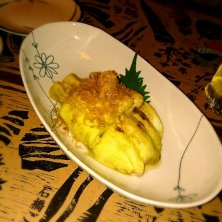 ご近所の「くもりのちはれ」に初来店。 しっとりと落ち着いた店内✨ 荒れ模様のお天気もあって、お客さんは私たちだけ...、と思いきや、上品な奥様方の集まり一組と、仲の良さそうなご夫婦が一組。 とはいえ、落ち着いた店内、静かにゆっくり食事ができました。 基本はおまかせのようですが、単品で。 「ふろふき大根辛味噌添え」。辛味噌、めっちゃ美味しかった💓