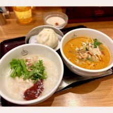 2/23 天皇誕生日に人間ドック…前日のお昼のしまほっけ以降、夜ご飯も食べ損ねて人間ドック明けに28時間くらいぶりに食事。 粥餐庁(かゆさんちん)で中華粥をいただこうと思ったのですが、まぜ麺+点心のセットに😊 パクチーもりもりなのと全粒粉の麺!美味しかったです!
