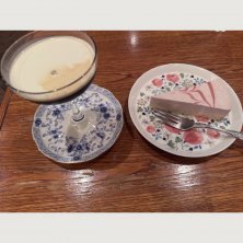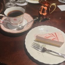 ✨皇琲亭✨ ブレンド あまおうのレアチーズ レトロな喫茶店。ブラックで飲むのが通常ですが、 ここのブレンドはミルクを入れてもとても美味しい。むしろミルクを入れた方が香りがたつ気がする。レアチーズケーキは思ったよりイチゴ🍓甘さ控えめ。 美味しかった!