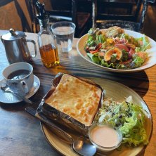 今朝は、嫁さんを駅まで送っての帰り道にモーニングを…。 チーズトーストにサラダを追加。 ^ ^