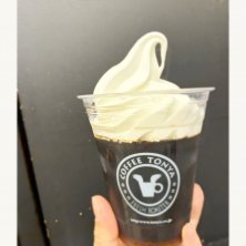 おやつ コーヒーゼリー確認の儀 まずボリュームにびっくりですよね カップにたっぷりのコーヒーゼリー ソフトクリームを少しずつ添えながら、すくいとって食べるといいバランス ゼリーが好みよりもちょい固めではあったものの 美味しくいただきました 豆を注文してから焙煎してくれる、こだわりのコーヒー屋さん、品揃えも豊富で通うのが楽しいお店です