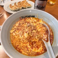 タンタンメン大辛。タンタンメンにしては珍しくツルツルプリプリの多加水麺。玉子もあって辛さはあまり感じず。何より着丼の瞬間から素晴らしいニンニク臭。これだけあると好み別れるね(^_^;)
