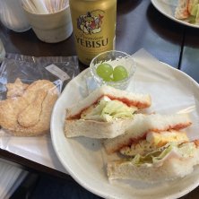 今日は昼から少年ピースと言う男性2人組アコースティックユニットのライブを見に茨木へ。 ドリンクと軽食付きと言うことでしたが具が満載のサンドイッチでした。 女性ファンが多いので他の方はほとんどアイスティーとかジュース系な中オッチャンはランチYEBISUビールで🍺 楽しく美味しいライブでした😋
