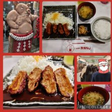 12/16日曜日 名古屋でイベント🎪あったのか 同じキャラクターグッズ持った方がいっぱい💦 そして、どこの食べ物屋さんも長蛇の列 名古屋に着くなり オープン前のみそかつ矢場とんエスカ店 長蛇の列で、待つ事1時間強 途中で、メニュー渡され 店員が、注文取りに来る。 ちゃんとカウンターされるから 席に着いたら 間もなく運ばれて来る🤗 味噌ダレは、その場でかけてくれた。 ヒレカツ定食の小 息子は、中 いやぁ 美味しいったら😋💖🍴⑅*॰ॱ 味噌ダレ 最高ね👍💕 美味しく頂きました