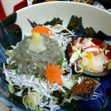 生しらすと釜揚げしらすの2色丼 しらすうまいー(*ノ´∀`*)ノ♡