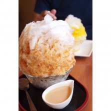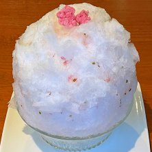 かき氷 桜スペシャルにいちご 桜蜜・桜餡・桜の求肥・桜の花のトッピング付き