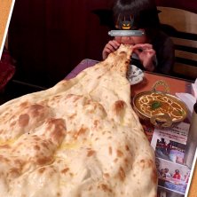 でっかすぎるー、ナン! 息子とフラリと入ったネパール料理店。 予備知識がなくて、 運ばれてきた瞬間、ギョッとした^o^ 通りで、ナンを2種類注文しようとしたら、 ネパール人の店員さんに止められたわけだ。笑