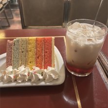 横浜駅のジョイナス地下2階の『サモアール』。いつも行列のお店ですが、平日夕方なのでそれほど待たずに入店出来ました。人気のロイヤルミルクティーとレインボーケーキを頂きました。 ビックレインボーケーキ 1,350円 ロイヤルミルクティー 750円