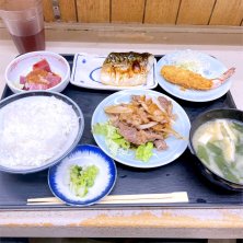 綱島駅前の定食屋さん。メニューも豊富で夜遅くまでやってます。日替りの4品定食はフライ(エビフライ、コロッケ)、オムレツ、大根煮物、まぐろブツの4品が付いたお得な定食です。 4品定食 1,150円
