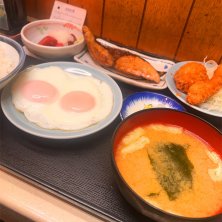 四品定食 ブリ照焼き、エビフライ、マグロぶつ、目玉焼き 午後案件の前半は微妙に行かないエリアで駅からバス 気になってた定食屋さん さんま塩焼きと悩んだけど初だから欲張りたい ブリ照焼きに惹かれたのも事実 人気の理由が分かった気がします