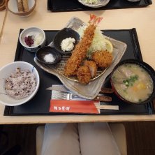 晩御飯❗️ 今晩は…とんかつ屋へ〜(。≖ิ‿≖ิ) 明日、朝早くから…東京行くから、早く 寝なきゃ~と思い〜(˶‾᷄ ⁻̫ ‾᷅˵) …って言うかぁ〜 ご飯の後片付けするのも 面倒だなぁ〜ってねっ!(‧̣̥̇꒪່⍢꒪່ ) あたしは…レディースセットを! 海老フライ、ヒレカツ、クリームコロッケに 茶碗蒸し、デザート付きのを〜꒰ღ˘◡˘ற꒱❤⃛ 旦那は…鯵フライとロースとんかつセットを~! サラダとタルタルソース…おかわりしたわっ! ‼‼(⌯˃̶᷄ ꈊ˂̶᷄ ૢ)ꋧ 旨っ❗️✨
