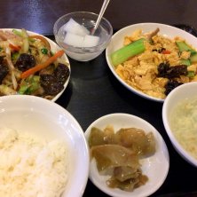 日替り定食は、お料理が2品、スープ、搾菜、杏仁豆腐がついて、なんと800円。一つのお皿でも十分一品分あります。旨旨!