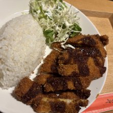 久しぶりの「カツランチ」持ち帰りをお皿に盛っただけです^_^; トンカツ2枚入りで700円…繁盛するはずです^_^