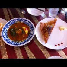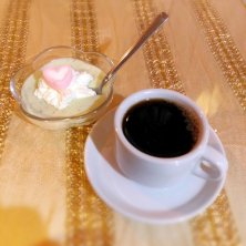 連投すみません。 デザートにピスタチオのプリン?クリーム? とアラビックコーヒー。 コーヒーはカルダモンが入ってるらしく独特の香り。 私は飲めるな。苦手な人は苦手かも。 そして、割と控えめかなと思ってたクスクスが胃の中で大膨張中…苦しい…