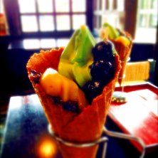 そして宇治に来たからには宇治金時を。 あれー餡子が乗ってないなーと氷を掘ってみたらば、 あらなんと通圓の宇治金時氷は、氷の中に餡子が鎮座しておられました。 あれやね、宮古そばの、具が麺の中に隠してあるのに似ていますね。 まああちらは昔の税制が厳しくて「わしらはこんな具のない味気ない蕎麦しか食うてないんです」ということだそうですが、この宇治金時はどうなんでしょう笑 しかしやっぱり、老舗御茶処のお茶は美味しいですね。 茶蕎麦も氷も、大変美味しゅう御座いました♪