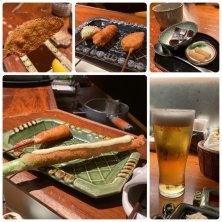 串揚げでちょい飲み。写真は1部だけですが、しっかり10串いただきました。
