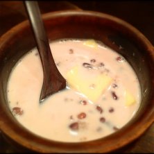 デュム(ブータンのチーズの入ったお汁粉) 甘くなくて優しいミルク味。ほんわかしました。ブータン料理は辛いけど、辛いのが苦手なので優しいお味のお料理ばかりいただきました。幸せの国ブータン料理(*^^*)