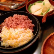 昨夜の宴。代々木上原にあるブータン料理の店。 エマダツィという、ブータンの代表的なトウガラシを食べる料理だそうで、 トウガラシと玉ねぎとチーズだけをクリームで煮たシンプルな料理です。 赤や緑の生トウガラシをガシガシと食べるのですが、2〜3個目で口の中がビリビリと痛くなってきて、ご飯にかけながらようやく完食しました。 おかげで今朝はトイレが痛い(>_<) 何事も慣れぬものはほどほどにですね。