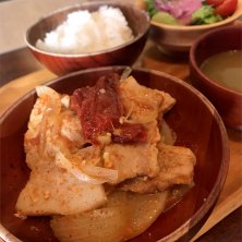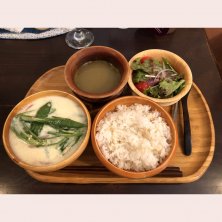 代々木上原で、ブータン料理ランチ! パクシャパ(大根と豚バラ肉の唐辛子煮)定食にしました♪ 東京唯一?のブータン料理屋。 MAX12席と小さなお店ですが、ラストオーダー(14時)ギリギリでも客が切れない、人気店なのですね。 辛いと聞いてたので、おっかなびっくり一口目。 唐辛子!辛ーい! でも段々慣れてくる、旨味を感じられる辛さ。 夜のメニューも気になる。 一緒に行ってくれる人がいれば。笑 ごはん、隣席の男子がてんこ盛り! 私、半分でいいです〜と言ったが、足りず。 結局おかわりしました♪