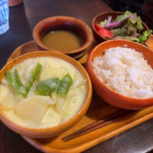 ケワダツィランチ ジャガイモと青唐辛子をチーズで煮込んだ料理。ダツィというのがブータンのチーズ料理の総称で初めて食べたー。他にも唐辛子のエマダツィ、きのこを煮込んだシャモダツィとかあったので、今度食べてみようかな!