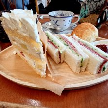 下北沢ランチ☆ポークトーストサンドイッチ。 バレンシア・サンセット、というセパレートティーと。 バレンシア・サンセットは、オレンジジュースを使った紅茶ドリンク。さっぱりして美味しい! やっと用事一件おわり。お腹が空いた! ここのお店、いつの時間帯でもオバサマ達がにぎやかなんだけど…美味しいし居心地がよいのです^ ^ ゆっくりしたいけれど、次の予定もあるし自転車は路上駐車だし。早めに出発します。