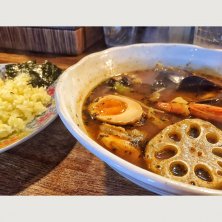 函館にて こちらに来てからストイックな食生活とトレーニングの日々でしたが、ここでの仕事も終盤。 ご当地グルメのスープカレーをいただきました。 港町のせいか海苔がよく合うシーフードテイストが美味しかったです。 ご馳走さまでした♪