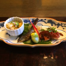 精進料理コースの一部 湯葉の蓮根包み焼きパプリカソース 大根ステーキ 野菜の揚げ物 小鍋 職場の新年会で連れて行って頂きました。 上品で美味。
