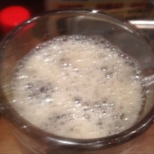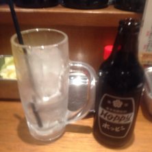 カメラマンの腕が悪いから分かりにくいですが(;^_^A…注いだ時に立つ黒ホッピーの泡、以前より格段にキメが細かくなった気がするのです…これも黒ホッピーがさらに美味しくなった一因てしょうか? きっとなにか秘密があるはず…教えてください、ミーナ社長!