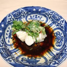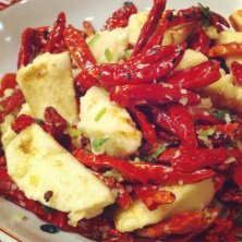 三田の中華の名店「桃の木」にて、揚げナスの唐辛子炒め。絶妙の食感!