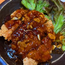 油淋鶏がデカすぎて、どうしたら良いかわからない。
