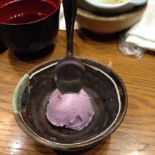紫芋のジェラートです。 カチカチでスプーンが刺さらない…。(>_<)
