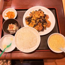 久々に汐留地下駐車場で日替わり定食。エビ入り麻婆豆腐なんだけど恐ろしいほど辛くない。 そんな550円。