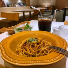 マッシュルームミートソース🍝 トリュフ風味〜😍 一番乗りしてしまった🤫 とても静かで 久しぶりにまったりとした時間⏳ 充電できそぅです🪫