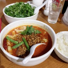 新宿西口のシーアンで麻辣刀削麺です。 今日は普通盛りでライスを追加しました。 連れは酸辣刀削麺にパクチーまみれを追加。 久しぶりの麻辣刀削麺でしたが、 やっぱり美味いです。 寒い季節には美味さが倍増します。 また来ます!