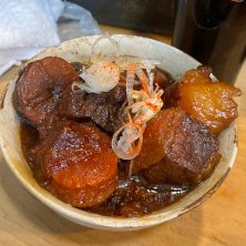 牛煮込み 新豊洲から歩いて帰る途中で勝鬨に差し掛かりかねますを覗いたら一人分空いてたので入り込む。 しっかり脂が残った分厚い牛肉とこれまた分厚いほくほくの輪切りにんじん。 うまいねぇ。 #勝どき