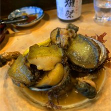 あわびバター焼き ¥2400 鮑3つ。柔らかい 鮑の下には茄子のソテー