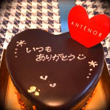 バレンタインのチョコレートケーキ❤️ Messageはその場でお願い出来ました。 味は、「甘過ぎなくて美味しいが、サイズが一人では大きいため、二度に分ける」そうです。