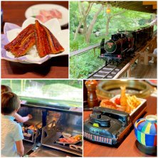 汽車がお料理を運んできます🚂 こどもたち大興奮🤗 私が子供の頃によく行ったお店です♡ 行っていた所は別店舗で今はなくなってしまいましたが、、、、 こどもたちと来ることができて嬉しいです😊