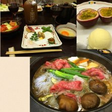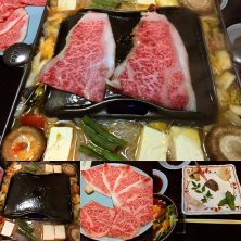 昨夜の晩餐(^.^) 先月、牛幸で『すき焼き』を美味しく戴いたので、昨夜は牛幸と言ったらイチオシの『しゃぶQ』を戴きました*\(^o^)/* 特製の鉄鍋の上段で牛ロースを焼き、下段の出汁・キムチ・お野菜を牛ロースの肉汁と一緒に煮て戴きます(^.^) お肉は一人4枚(赤身肉を追加)〆のきしめん・デザートまで、久々のしゃぶQは絶品でした(^_−)−☆ お酒は、伯楽星の酒蔵の限定品『残響Super8』を持込み、こちらも美味しく戴きました(o^^o)