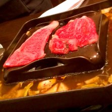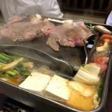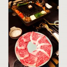 しゃぶQというお料理だそうです(๑•̀ㅂ•́)و✧ 真ん中でお肉、周りはお野菜たちが煮込んであります。 お肉とろけすぎてびっくりしました( ゚д゚)!!!! お店の方が焼いて下さるので過ちをおかさず食べれます(笑)