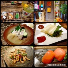 8/8月曜日 夜 岡山料理のikiya ここは、絶対美味しい♥ 岡パクヒートで、先ずカンパーイ😋🍻😋 よめななせ、黄ニラとキャベツのお浸し、鰆のたたき(これ、最高😍)、5種のチーズ🧀と黄ニラのピザ🍕(薄焼きで、これまた、美味しい♥) 最後に、岡山フルーツパフェ🍑🍨🍇 オシャレで、満足( ¯﹀¯ ) ご馳走様でした👍