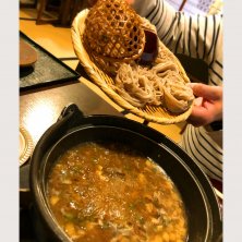 初めて食べた とうじ蕎麦@白骨温泉 細かく切った山菜・きのこ・豚肉・油揚げが入った甘じょっぱい汁で しゃぶしゃぶみたいにささっとお蕎麦を湯がいて具も一緒にすくって食べる。 すっごい美味しかった!! また食べたいなー♪