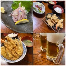 熱海に旅行に来ています‼️ 熱海といえば海の幸〜✨✨ 今日のランチはお刺身三点盛り定食(≧∇≦) アジのたたき♡ ブリ♡ マグロ♡ どれも美味し〜〜 最近は体重のコントロールの毎日だったけど、今日明日は食べちゃうよー(*´艸`)