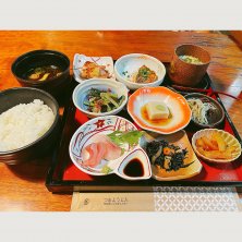 口コミで評価の高かった京都のおばんざい屋さんへ。御幸御前1080円。カウンターや掘りごたつ、テーブル、2階席と雰囲気も良かった。体に良さそうなお昼ご飯。 おくどはんで炊いたご飯はお代わり自由。
