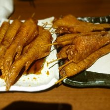 @博多 手羽先、もつ鍋、馬刺しをば。手羽先はヤマちゃんより大きくて食べごたえあり。170円/本安い!手が汚れるけど美味しいねぇ。塩とタレならタレが好きだな。馬刺しがなにげに美味しかった。
