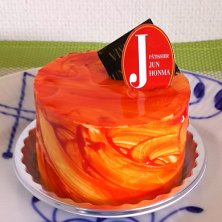 本日の、夜中スイーツは、先日と同じパティスリーです♪ 今宵は、マンダリンをご用意致しました♪ マンダリンオレンジのムースと紅茶のムースを重ね、真ん中に、クレームブリュレを、忍ばせました、周りを、透明なジュレで、覆い、マンダリンを、強調するフォルムとしました♪ トップには、チョコプレートを、アクセントにし、全体を引きしめております♪ マンダリンオレンジの風味を、紅茶のムースが、さらに、高い次元に押し上げて、クレームブリュレが、程よい、アクセントになっております♪ こちらは、紅茶に合わせて下さいませ