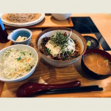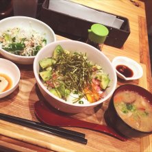 帰りに友達に渡すものがあり町田で待ち合わせ。 ねぎトロアボカド丼(サラダ&とん汁付き)にカフェオレのドリンクセット。 実は昼も含めて初めて入ったんだけど、夜はしゃぶしゃぶ食べ放題が人気のようで、定食はかなり待たされました。。