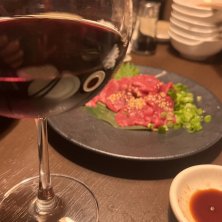 2025/12/07 馬刺しよりもワイン🍷にピントがw そうそう、おそろしいことがありました! 飲み口が軽くて、このグラスワインを調子に乗ってガンガン頼んでましたら、 まさかのオーダーストップー🫷 ずいぶん以前にあるお店でZIMAの在庫を飲み干したこともありましたがグラスワインで😜 #後追いpic